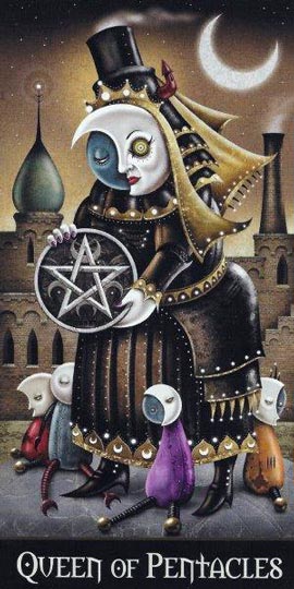 Deviant Moon Tarot door Patrick Valenza Op jonge leeftijd begon Patrick Valenza al met tekenen. In plaats van zich te uiten in woorden, deelde hij zijn verhalen door te gaan tekenen. Hij ontdekte de tarot en raakte onder de indruk van de karakters. Patrick bestudeerde de tarot voor vele jaren. Voor het maken van The Deviant Moon Tarot zijn er van verschillende vormen van fotografie gebruik gemaakt. Elke kaart begon met een complete tekening en werd daarna gescand naar de computer waar verschillende foto’s als figurant dienden. Kleding die in de negentiende eeuw door de bewoners werd gedragen leverde een bijdrage aan The Deviant Moon Tarot. Patrick boog, draaide en hervormde de foto’s om deze te versieren met mantels, laarzen en hoeden. Foto’s van begraafplaatsen en gebouwen die je op de achtergrond ziet werden gemaakt van een verlaten gekkenhuis. Kapotte deuren, ramen en muren werden kastelen, fabrieken en steden. De karakteristieke vormgeving werd beïnvloed door oude Griekse kunst met een lichte abstracte draai. De symbolen die voor dit deck komen uit dromen en verbeeldingen uit Patrick zijn kindertijd. Hij werd altijd geïntrigeerd door een zwaarmoedig gevoel in het leven en heeft een manier gevonden om deze beelden die in zijn hoofd zaten, om te zetten naar de karakters die hij zelf bedacht. De maan is altijd een geestelijke vriend van hem geweest. De maan die in de nacht de wacht over hem houdt. Tarot is de meest grote invloed op de kunst die Patrick maakte. Hij ontdekte de tarot toen hij negen jaar was. Hij was gelijk in de ban van de unieke karakters die hij op elke kaart zag en bestudeerde het kunstwerk van alle kanten. Terwijl zijn klasgenoten tekenden wat ze normaal gesproken op die leeftijd doen, was Patrick bezig met het maken van zijn eigen kleine tekeningen van de dwaas of de magiër. In heel wat jaren heeft hij meerdere malen geprobeerd om een eigen tarotdeck te maken, maar kwam telkens niet verder dan een paar kaarten. Maar hij hield het idee vast en maakte gebruik van zijn eerdere creaties en veranderde ze in The Deviant Moon Tarot. Patrick Vicenza heeft er vol inspiratie drie jaar over gedaan om The Deviant Moon tarotdeck. In werkelijkheid heeft het meer dan dertig jaar geduurd om dit werk compleet te maken. De kunst van Patrick is niet alleen een nalatenschap, het is een verslag van zijn leven.